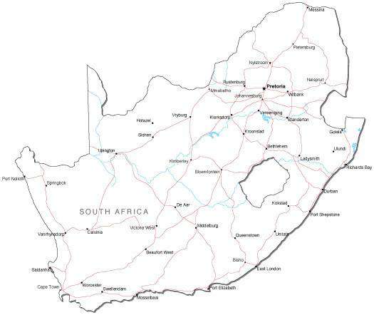 South Africa Black & White Road map in Adobe Illustrator Vector Format